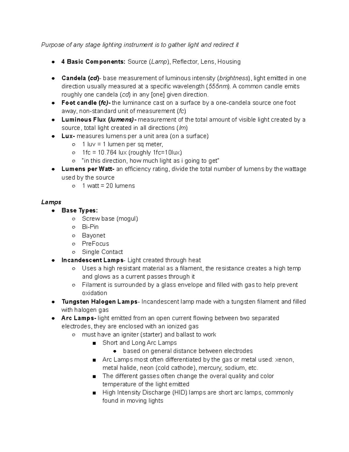 THEA 3316 Lamps and Light Sources - Purpose of any stage lighting ...