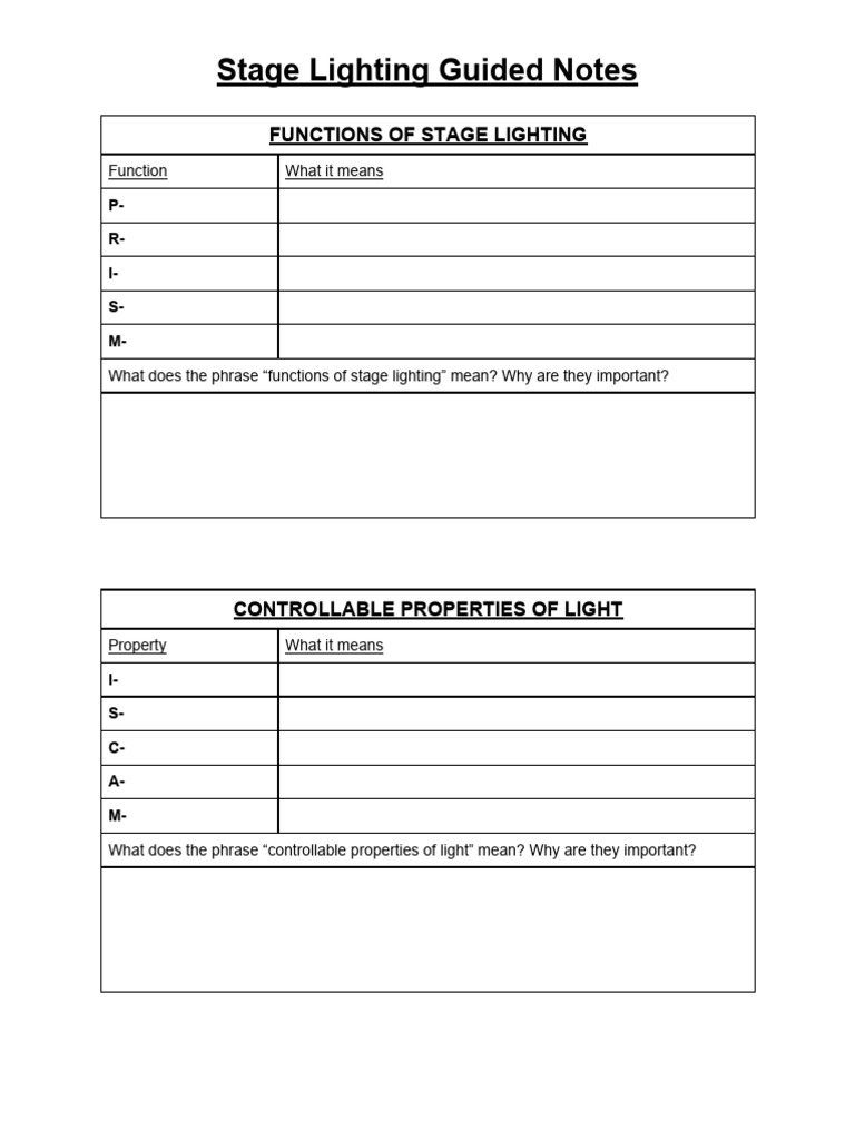 Stage Lighting Guided Notes | PDF
