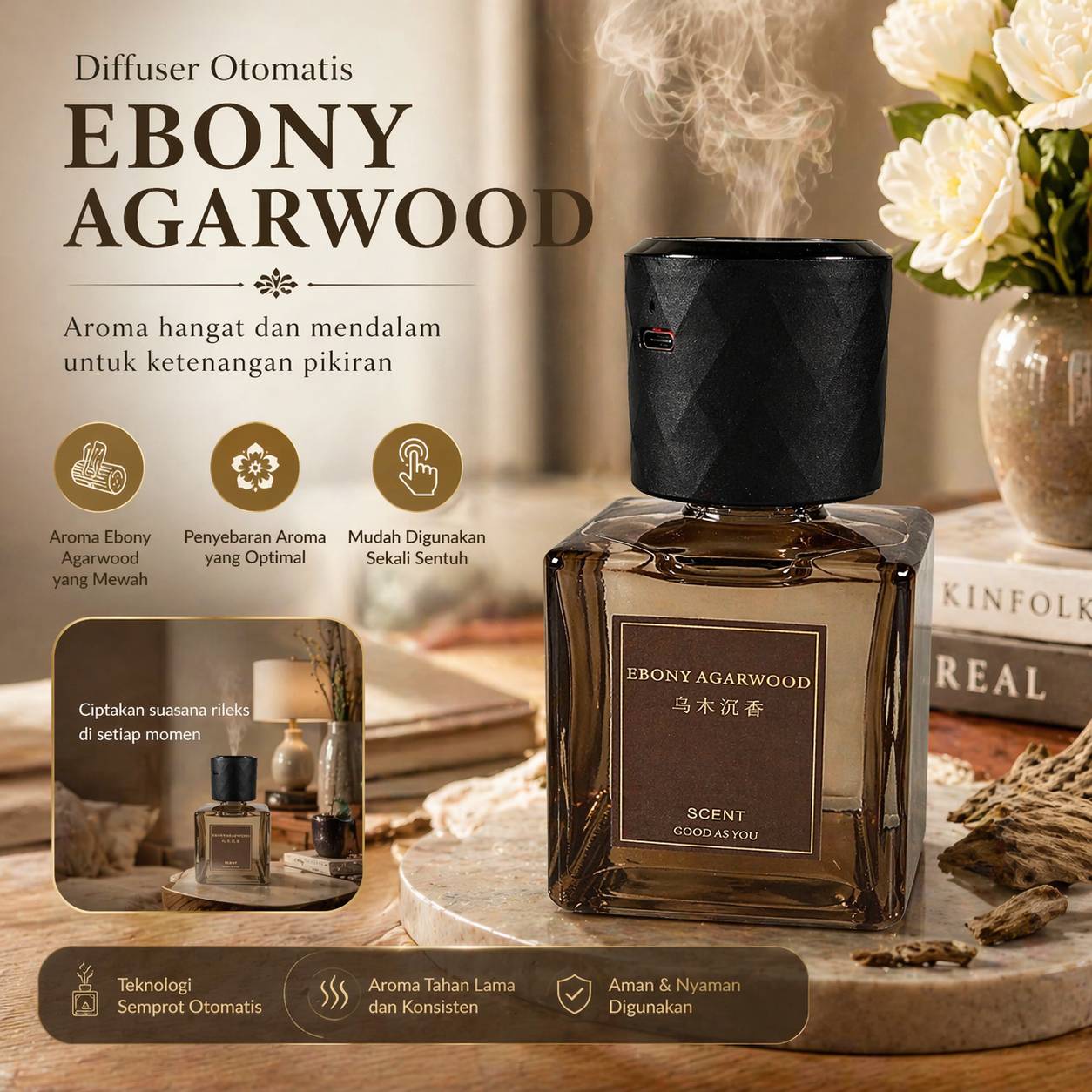 EAST HERBEN Diffuser Otomatis Auto Spray 4 Level 180mAh 200ml Ebony ...