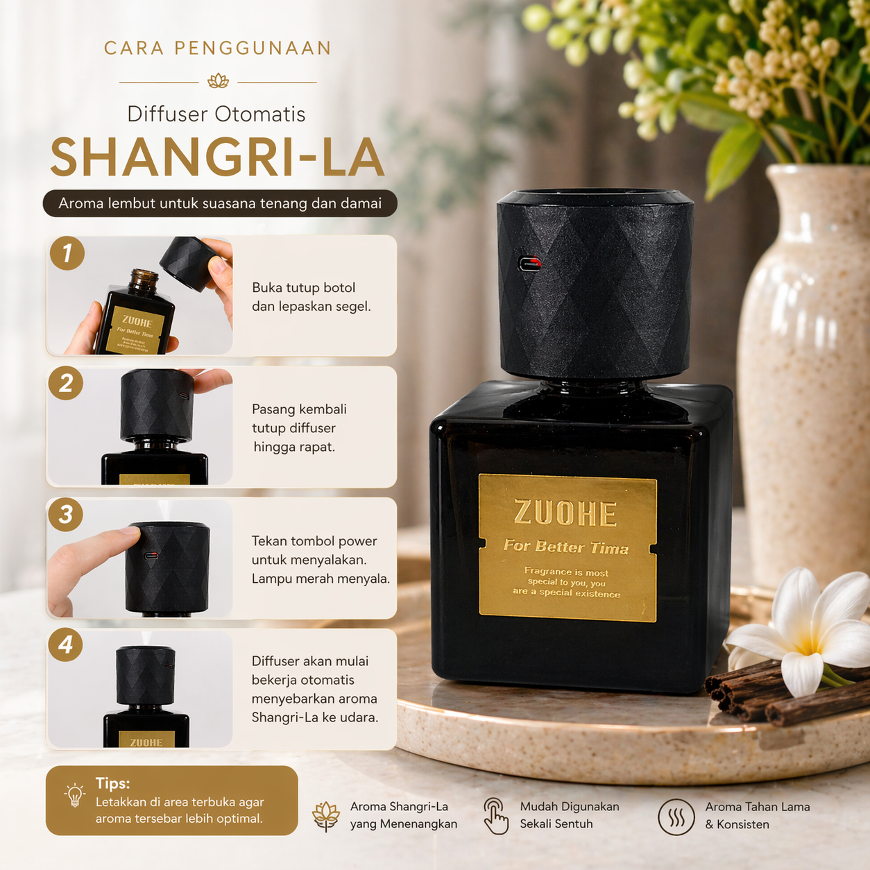 EAST HERBEN Diffuser Otomatis Auto Spray 4 Level 180mAh 200ml Shangri ...
