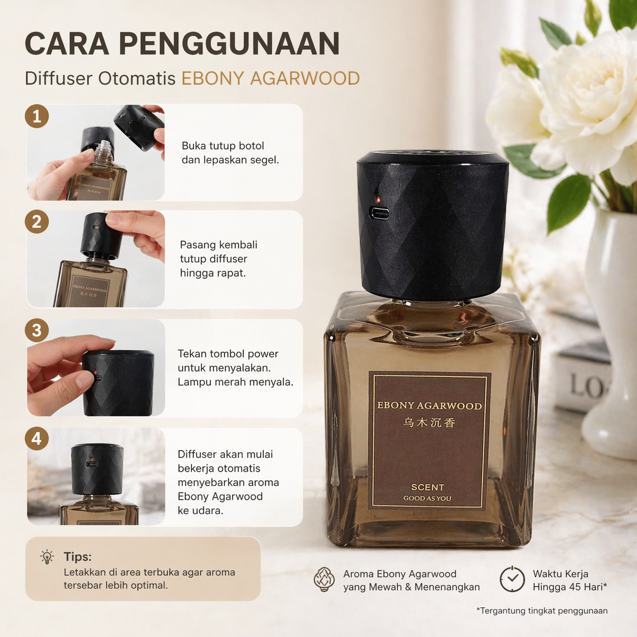 EAST HERBEN Diffuser Otomatis Auto Spray 4 Level 180mAh 200ml Gardenia ...