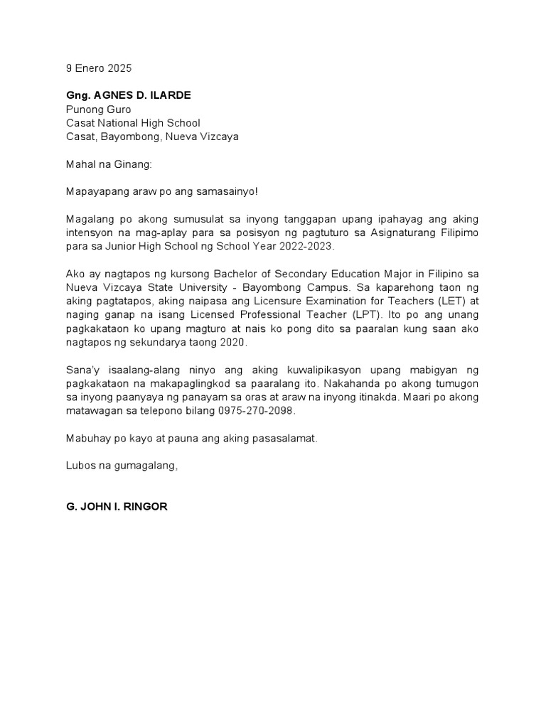 Halimbawa Ng Liham Ng Nag Apply