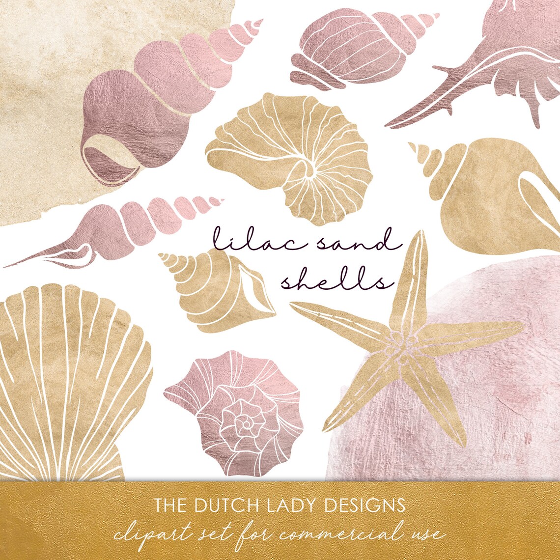 Seashell Clipart Set Lilac Shells Sand Textures Shiny - Etsy