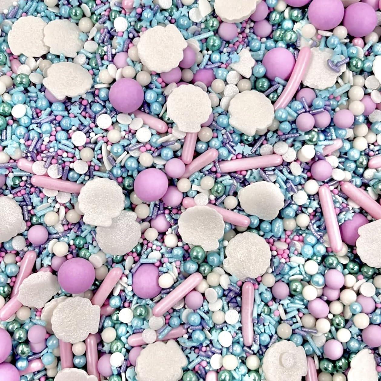 Mermaid sea theme blue pink lilac shells sprinkles cupcake cake toppers ...