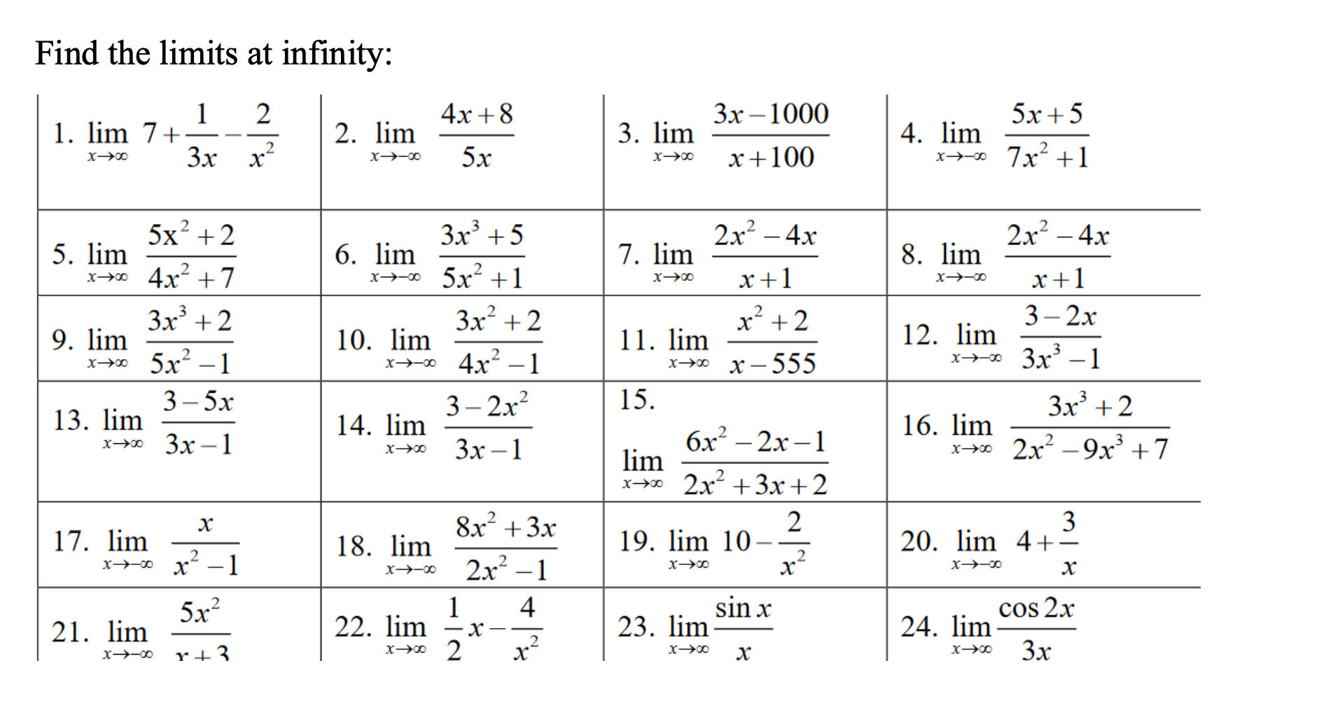 Master Limits at Infinity with Calculus Worksheets: Find Each | Course Hero