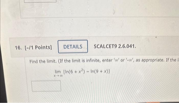 Solved Find the limit. (If the limit is infinite, enter ' ∞ | Chegg.com