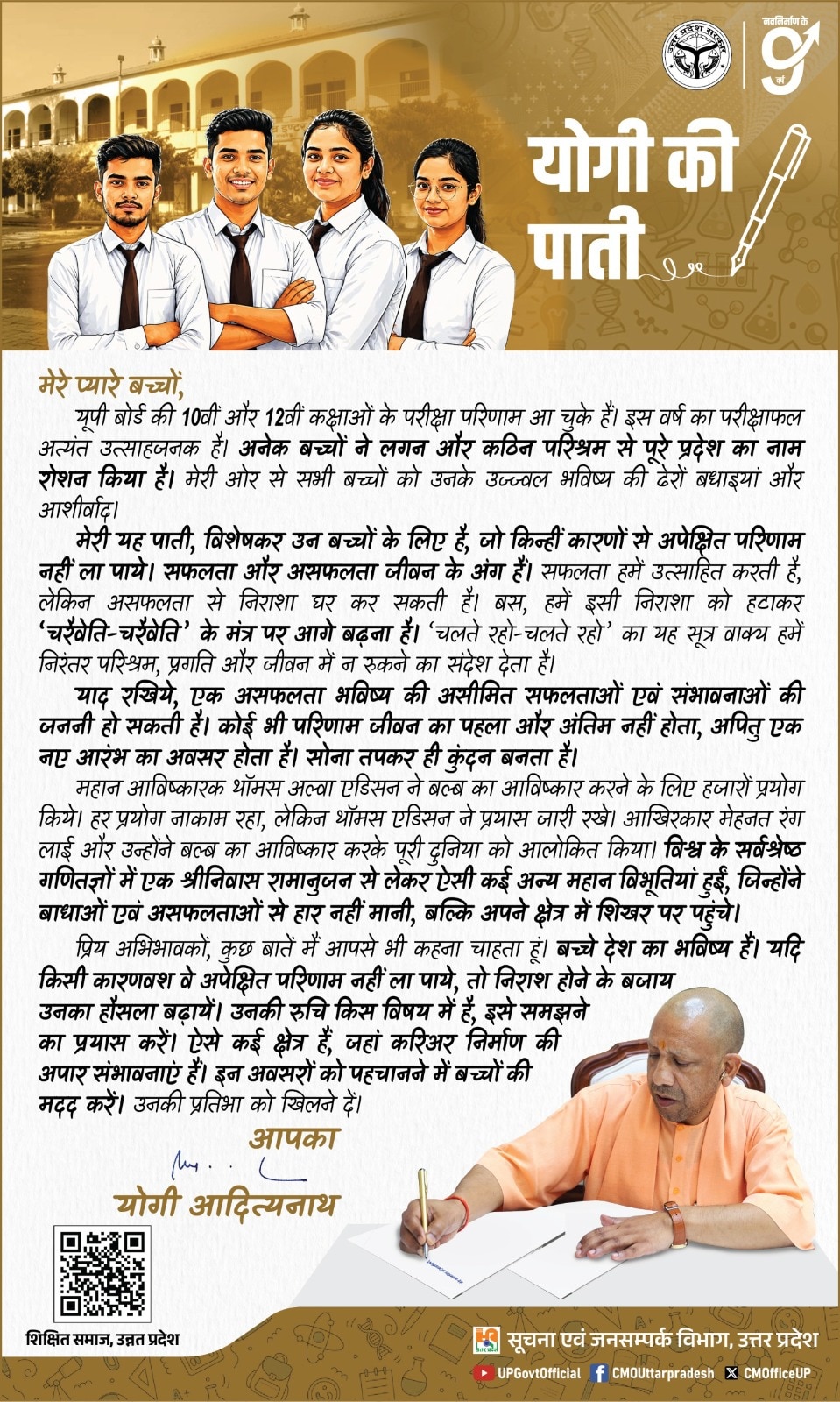 Yogi Adityanath writes open letter to UP Board students: Failure isn't ...