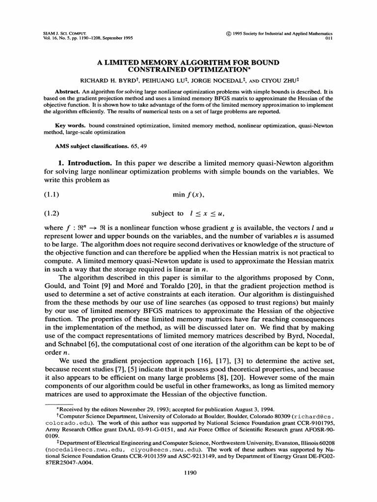 GOOD-A Limited Memory Algorithm For Bound Constrained - Byrd, Richard ...