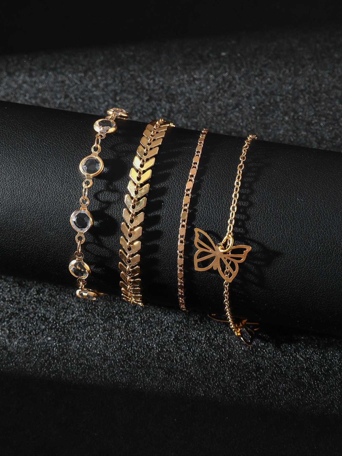 New Boho Style Butterfly Anklet Set, Artificial Crystal Multi-Layer ...