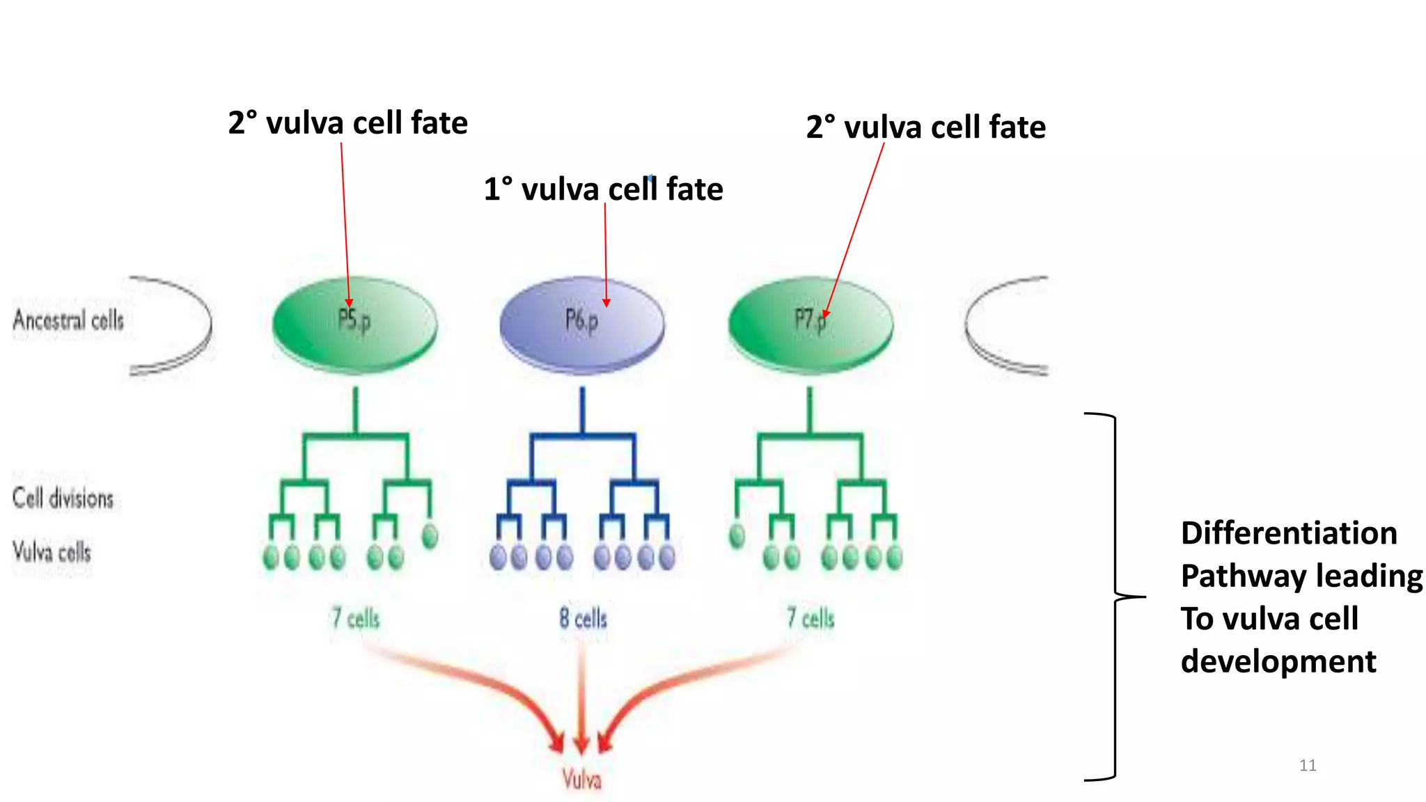Caenorhabditis elegans vulval cell fate patterning. The different cell ...