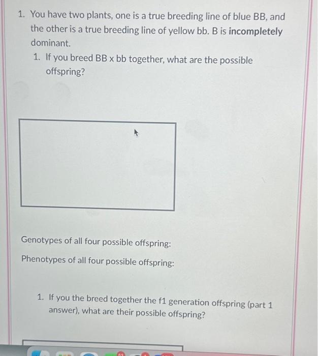 Solved 1. You have two plants, one is a true breeding line | Chegg.com