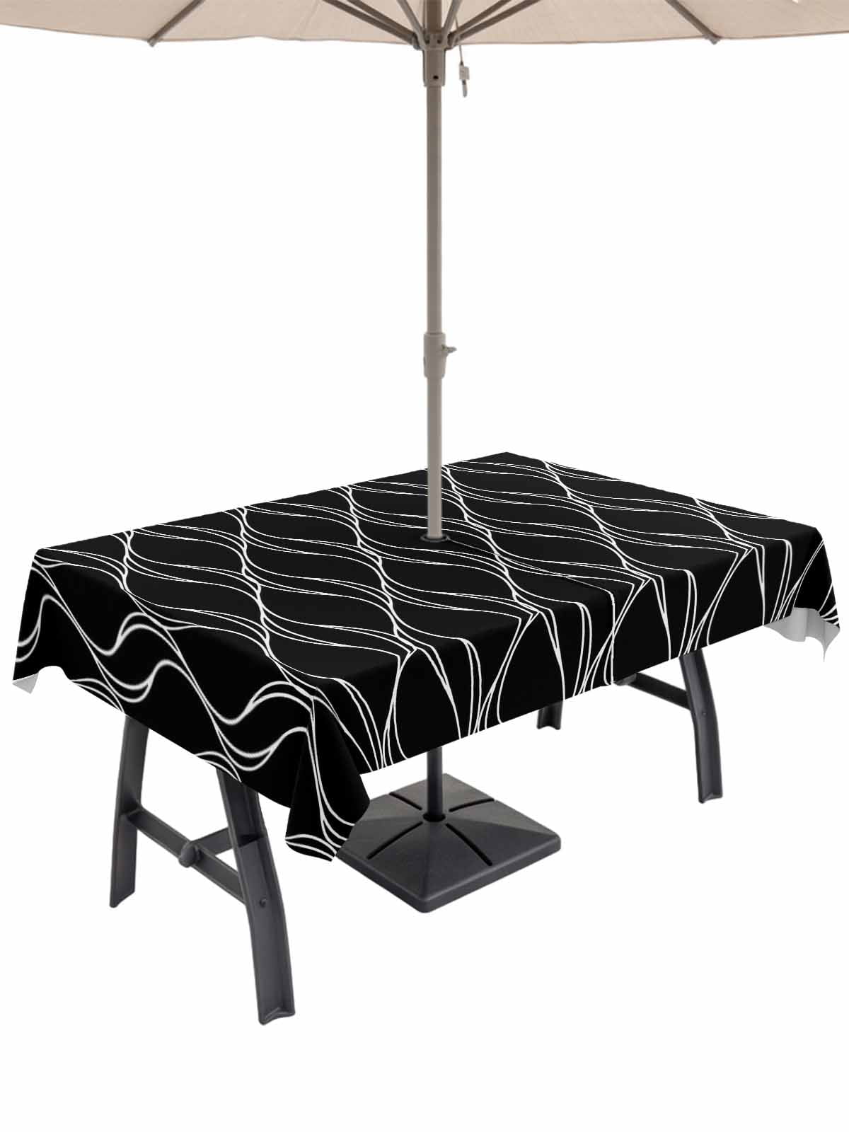 Black Stripes Line Rectangle Outdoor Tablecloth with Umbrella Hole ...