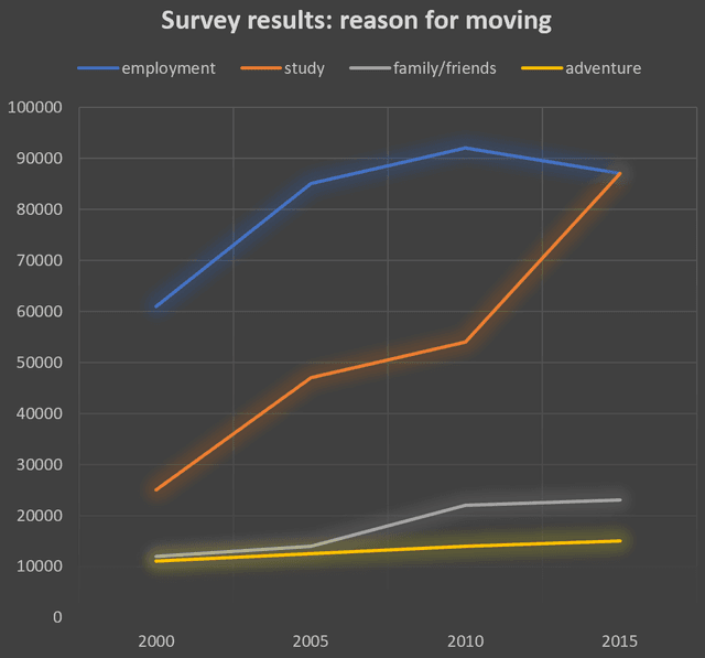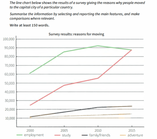 Band 5: The line graph shows the results of a survey giving the reasons ...
