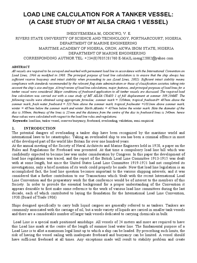Loadlinecalculationarticle 1 - LOAD LINE CALCULATION FOR A TANKER ...