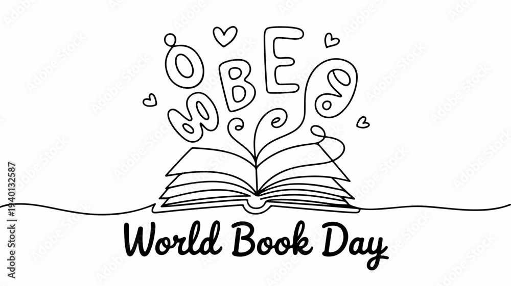 World book day celebration with open book and love text in a whimsical ...