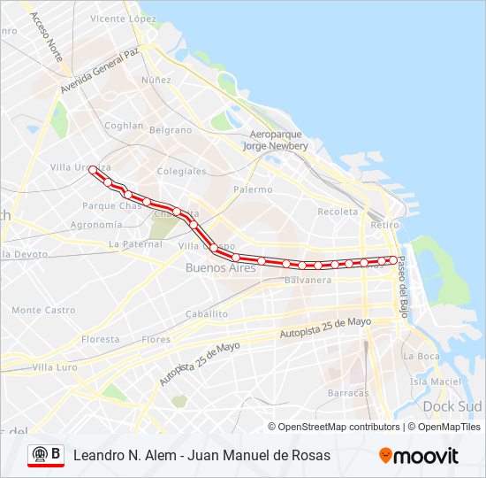 Línea B de Subte ≫ Recorrido, estaciones, mapa y horarios