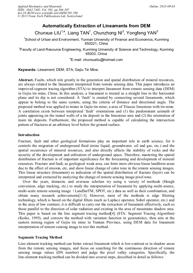 Automatically Extraction of Lineaments from DEM | Scientific.Net