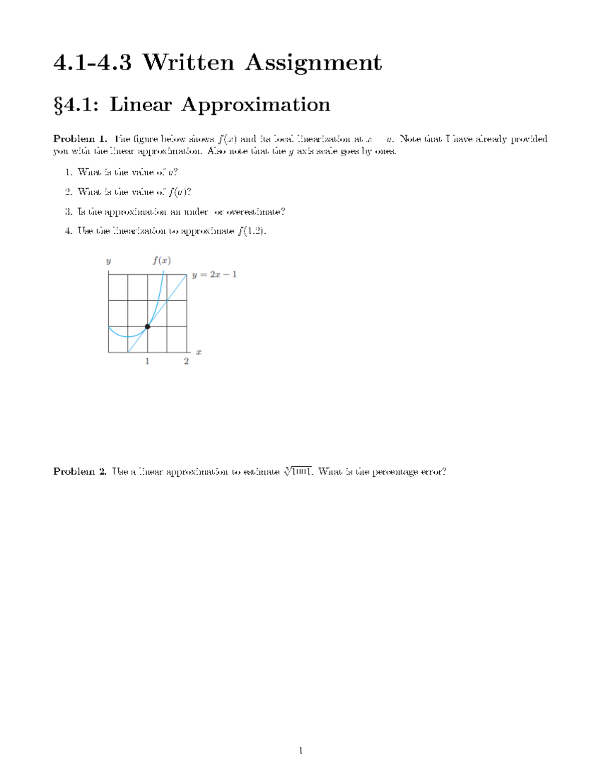 4 - 4.1-4 Written Assignment §4: Linear Approximation Problem 1. The ...