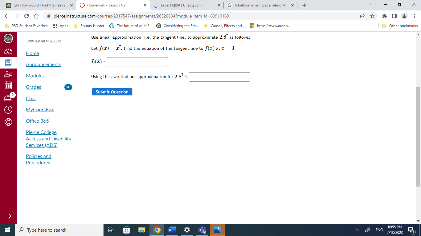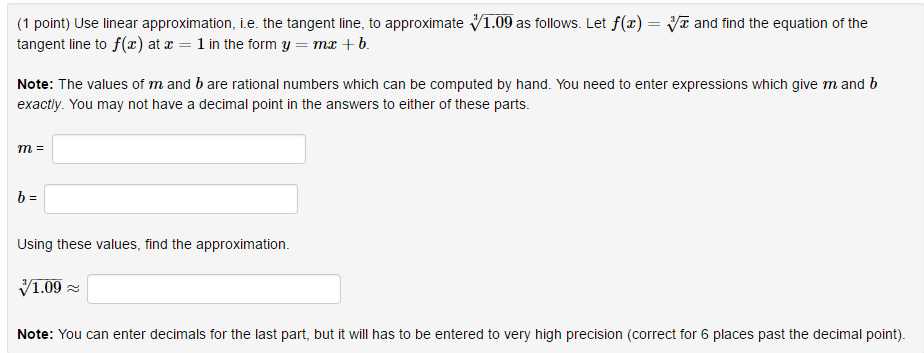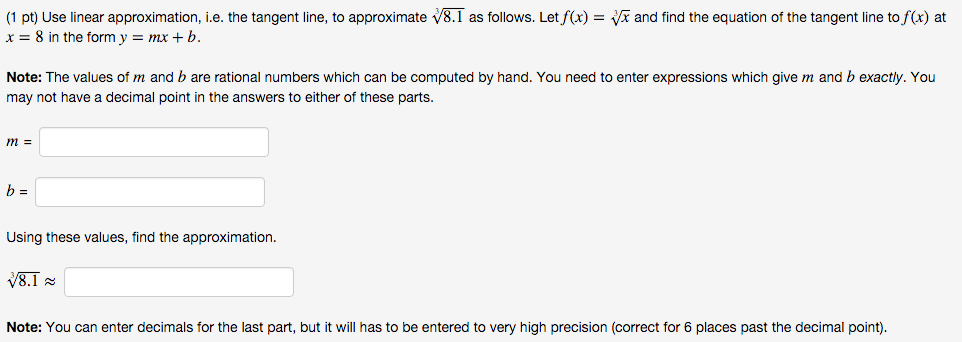 Solved 2.4 Approximations: Problem 7 (1 point) Use linear | Chegg.com