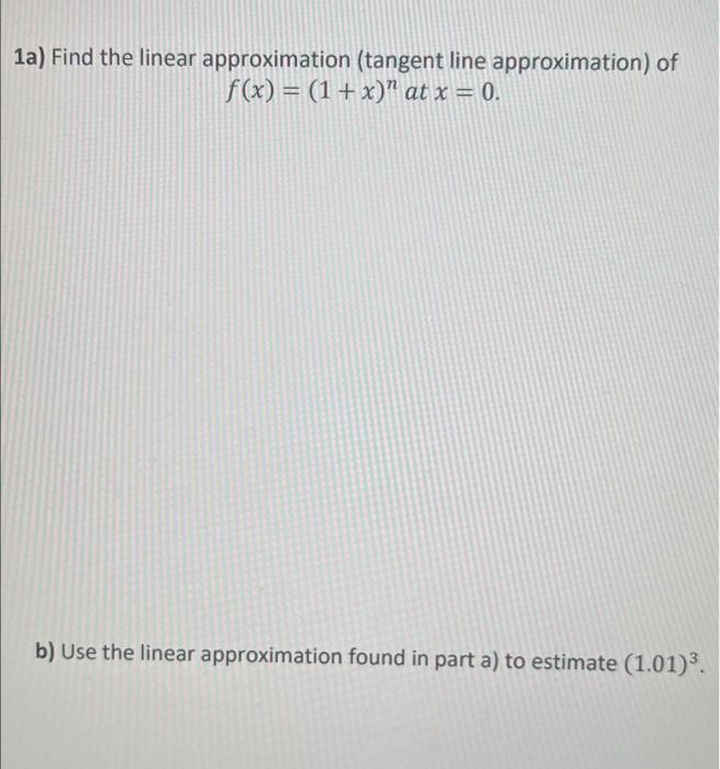 Solved 1a) Find the linear approximation (tangent line | Chegg.com