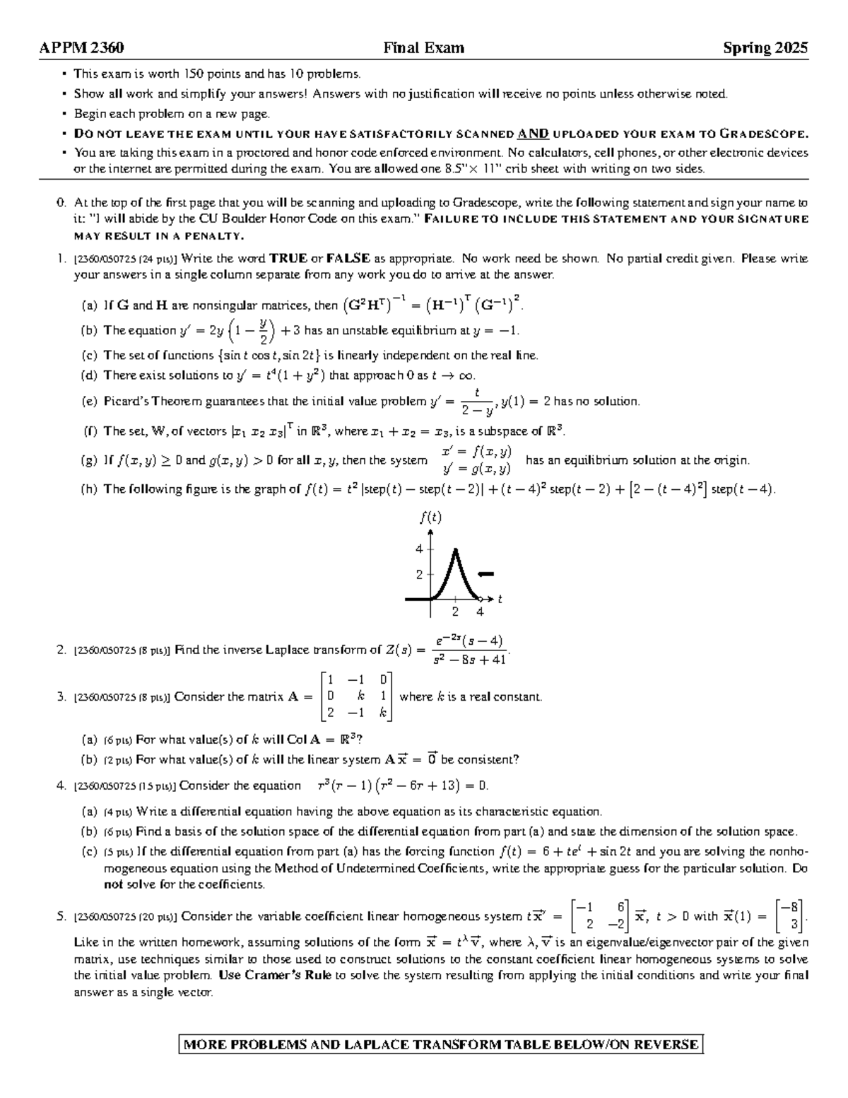 APPM 2360 Final Exam Practice Spring 2025: Key Problems & Guidelines ...