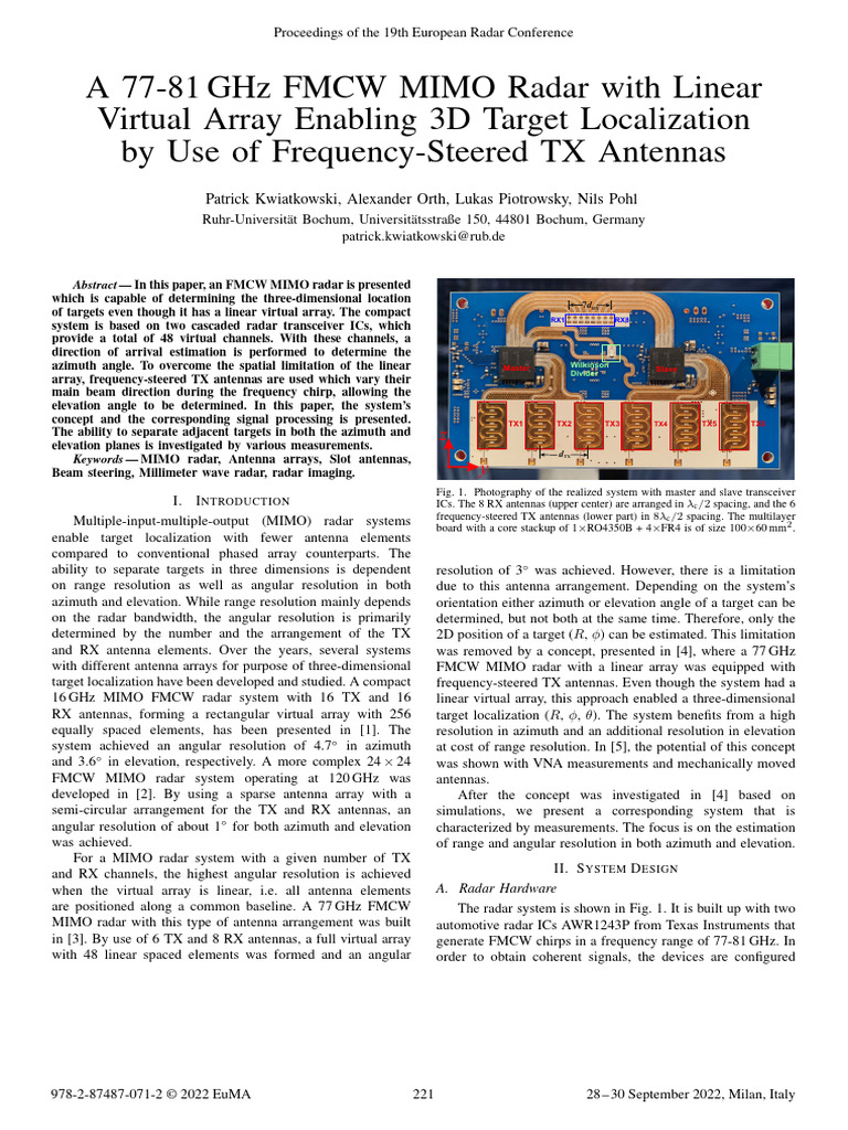 A 77-81 GHZ FMCW MIMO Radar With Linear Virtual Array Enabling 3D ...