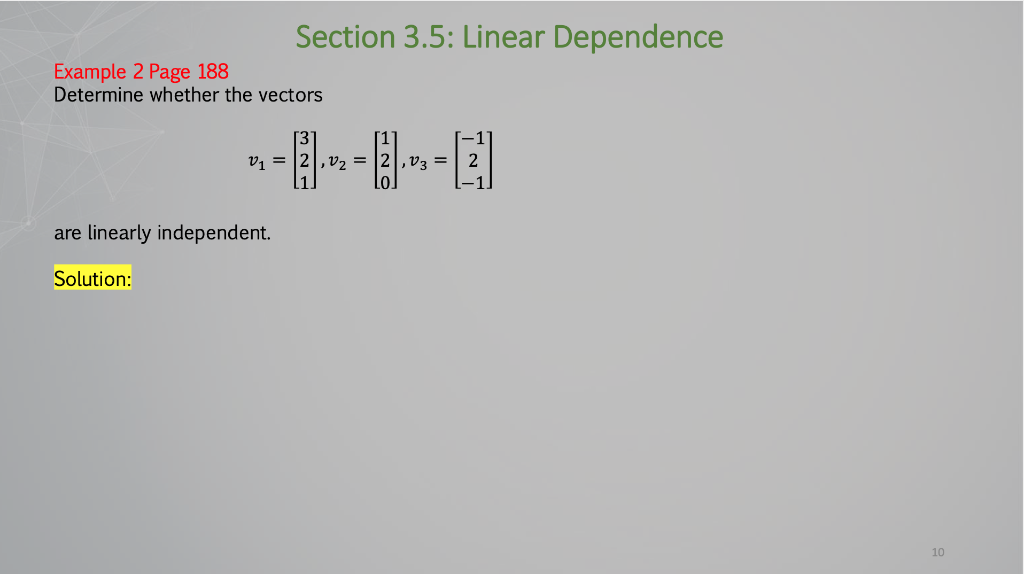 Solved Section 3.5: Linear Dependence Example 2 Page 188 | Chegg.com