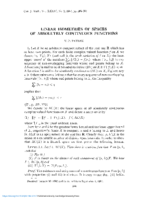(PDF) Linear Isometries of Spaces of Absolutely Continuous Functions