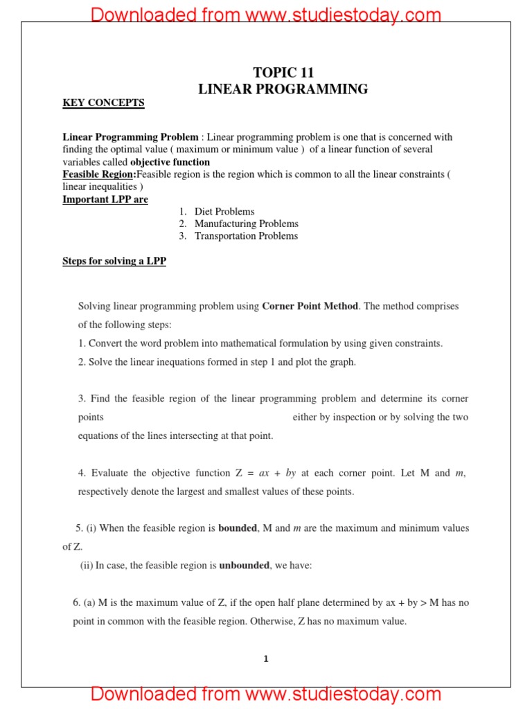 Linear programming class 12 math - Studypur