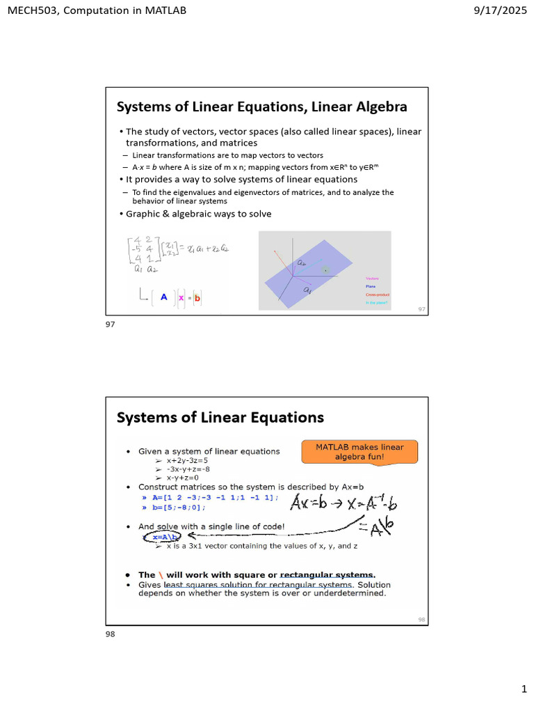 Lec02 Matlab Programming03 | PDF | Linear Map | Matrix (Mathematics)