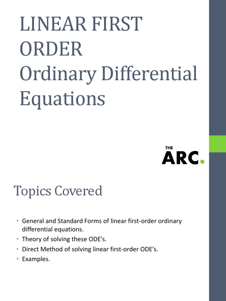 Differential Equations: Module 2 (Linear First Order ODEs) - YouTube