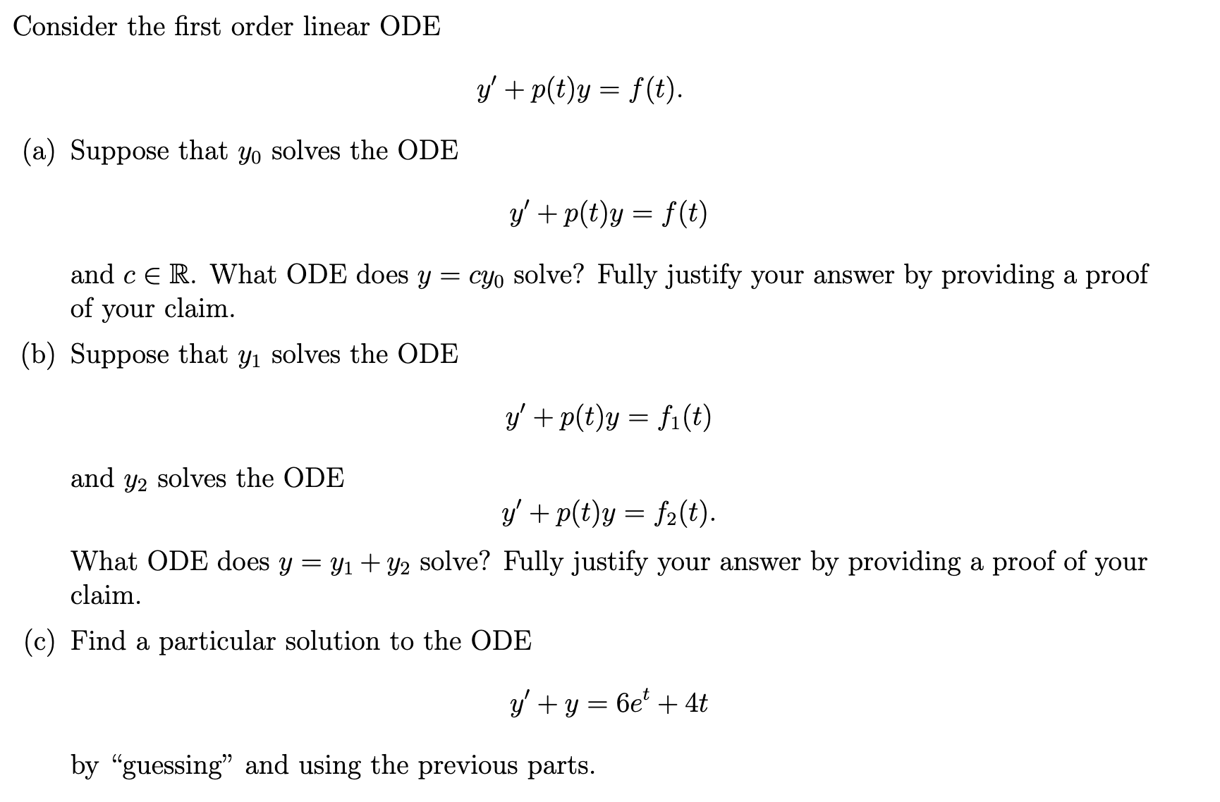 Solved (4) (First order, linear ODE) Consider the linear | Chegg.com