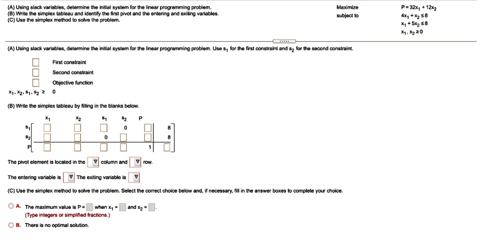 (A) Using slack variables, determine the initial system for the linear ...
