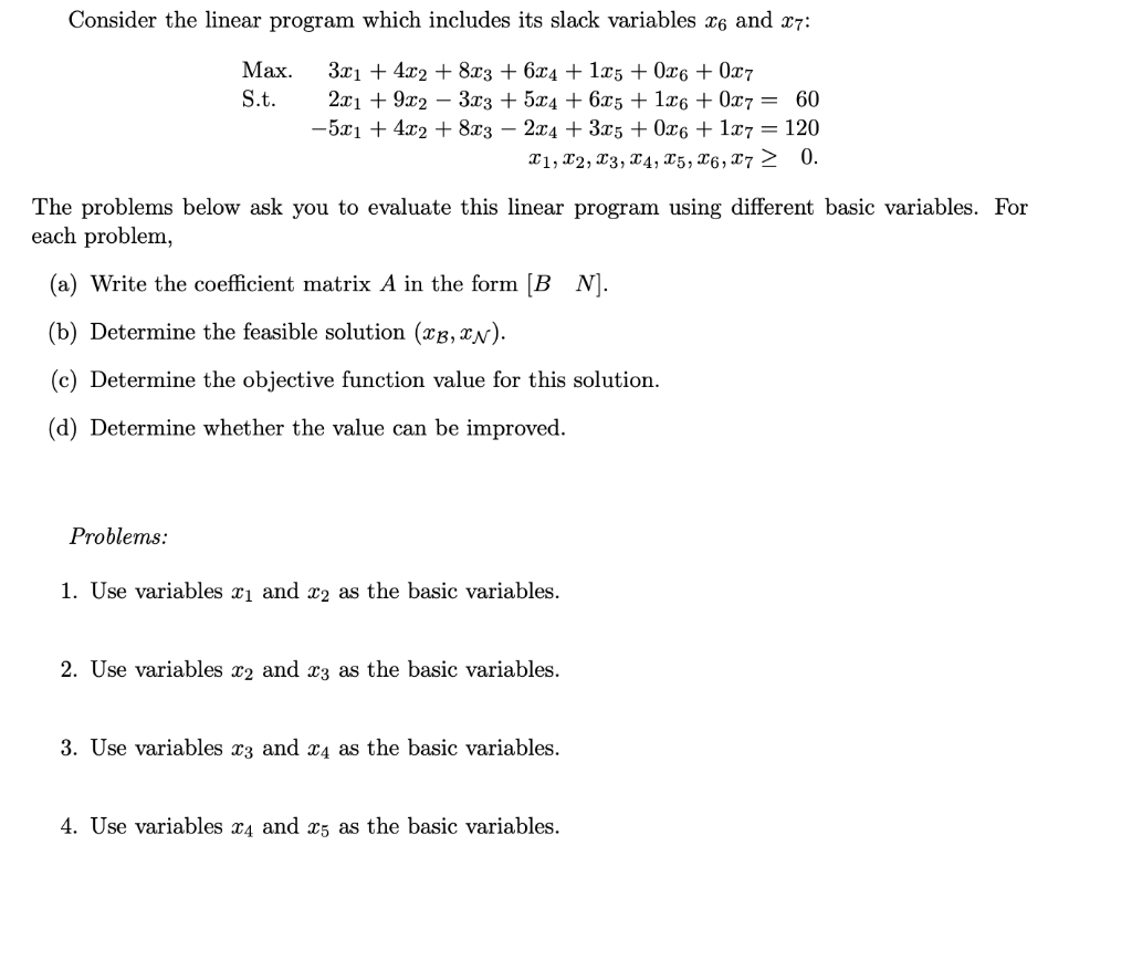a using slack variables determine the initial system for the linear ...