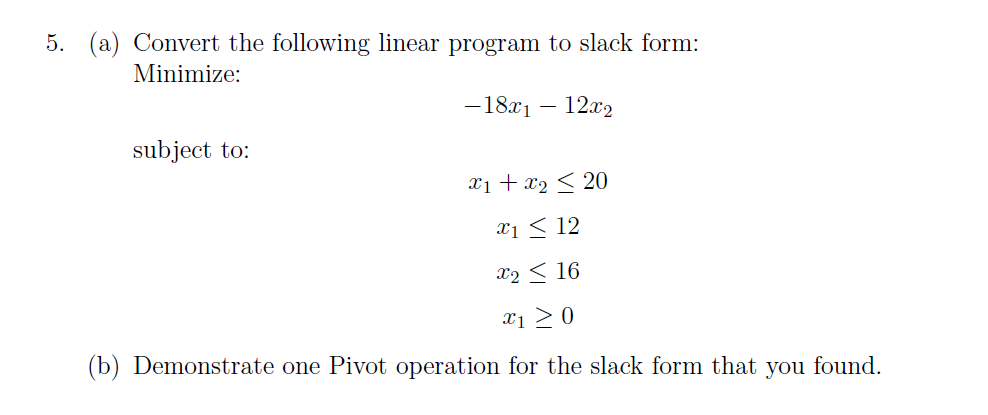 Solved (a) Convert the following linear program to slack | Chegg.com