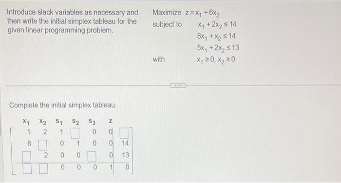 SOLVED: Rewrite the following linear programming problem using slack ...