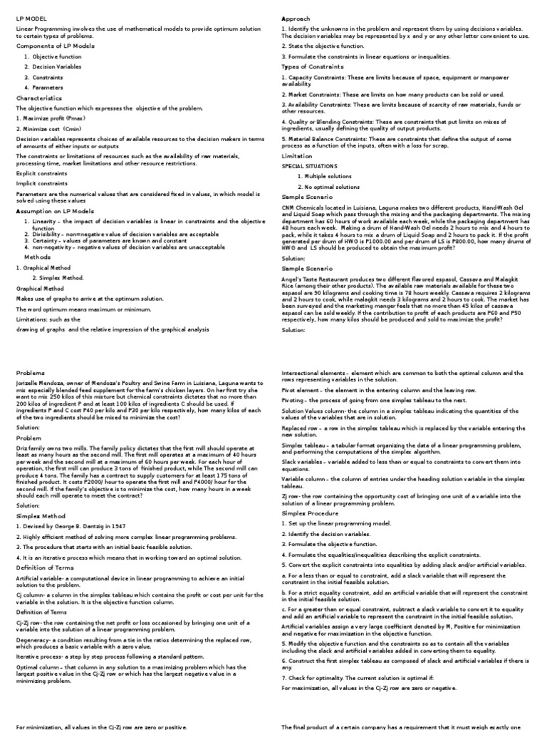LP Model | PDF | Linear Programming | Mathematical Optimization