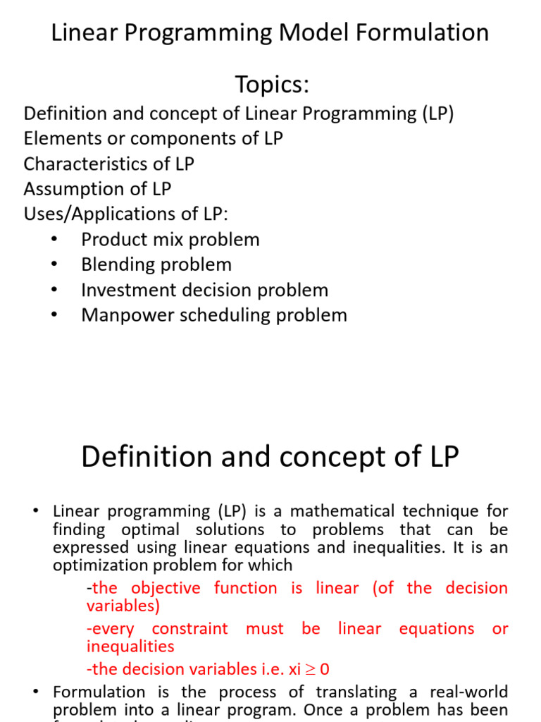 Linear Programming (LP) Model Formulation and Optimization Techniques ...