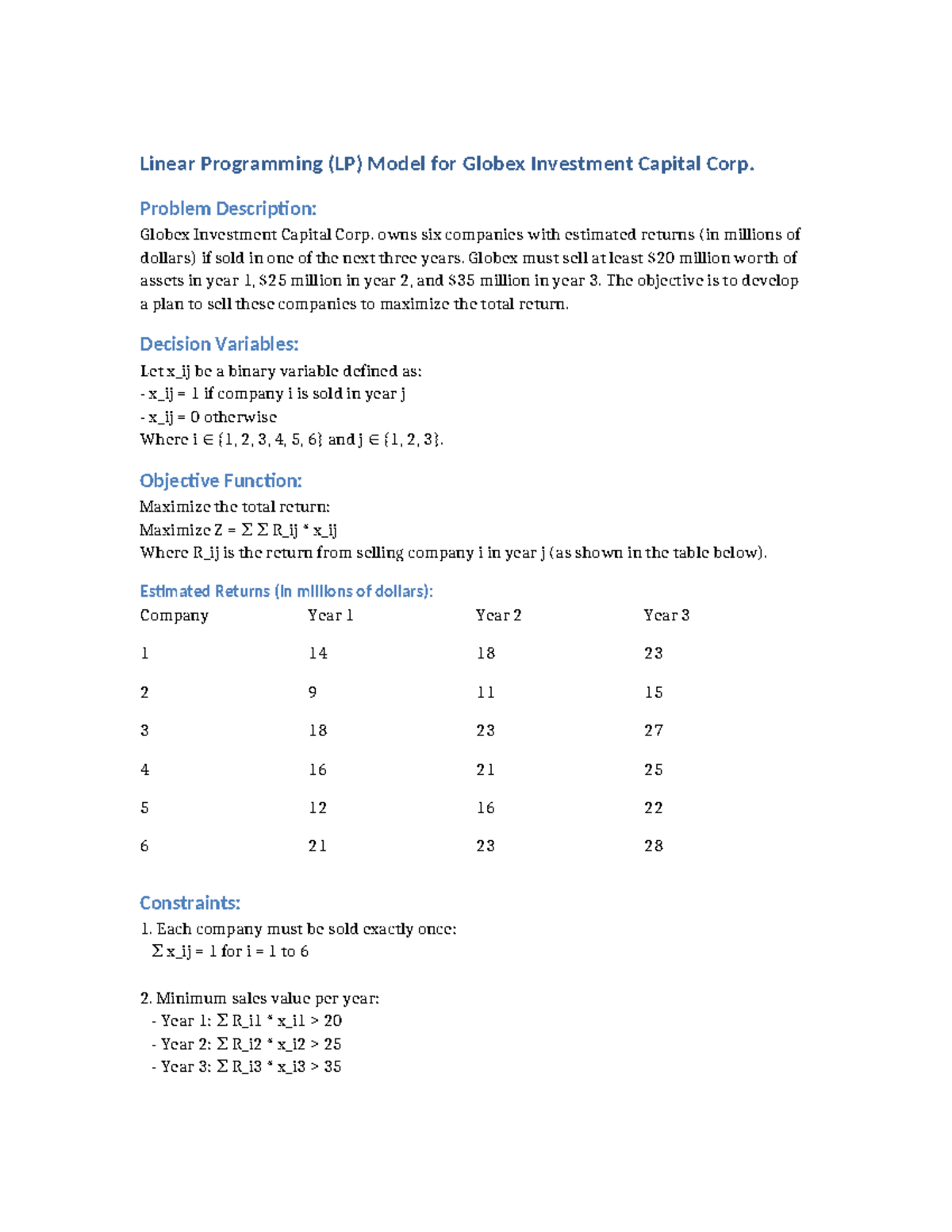 Linear Programming (LP) Model Formulation Examples and Solutions - Studocu