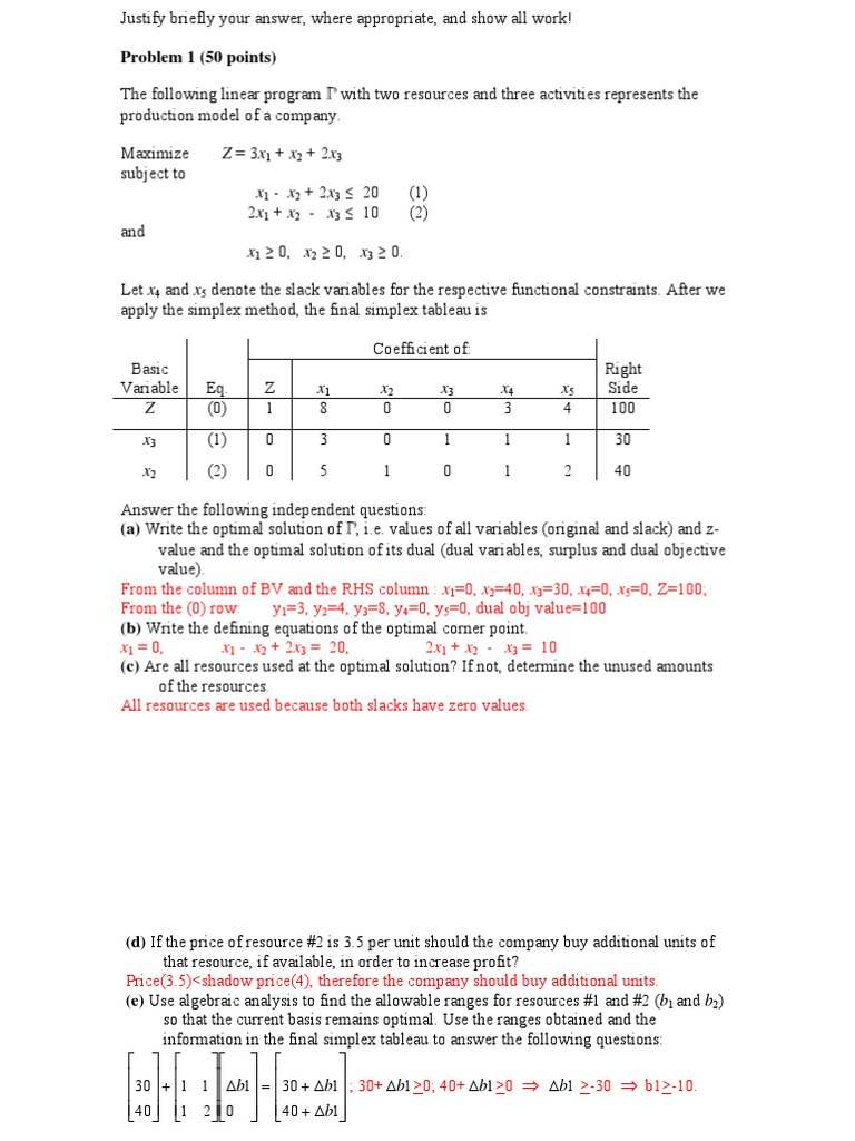 Linear Programming Simplex Model Review Questions | PDF | Linear ...