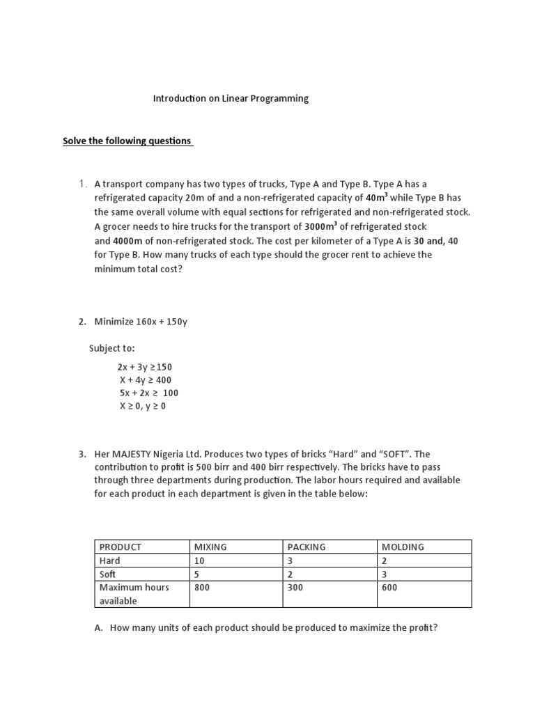 Linear Programming Practice Problems | PDF | Linear Programming ...