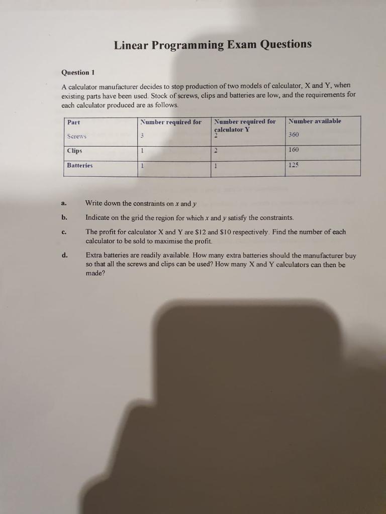 Solved Linear Programming Exam Questions Question 1 A | Chegg.com