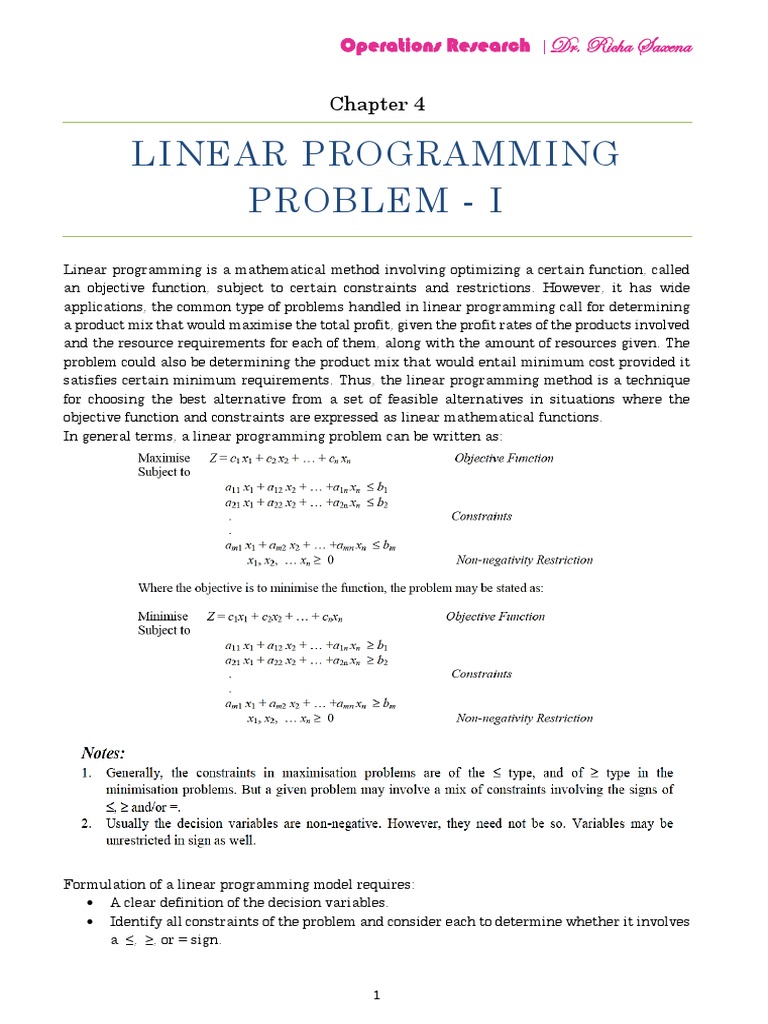 Chapter 4 Linear Programming Problems - I 2023 | PDF | Linear ...