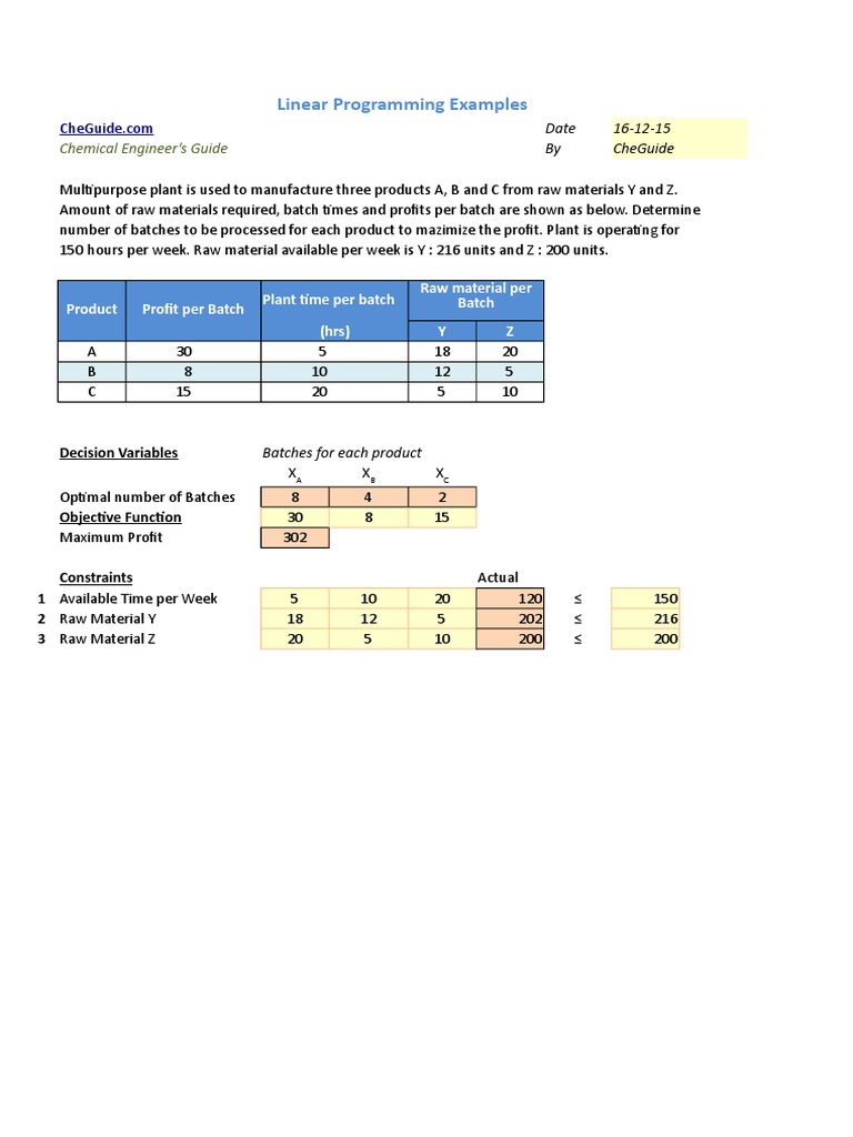 Linear Programming Examples: Chemical Engineer's Guide | PDF | Oil ...