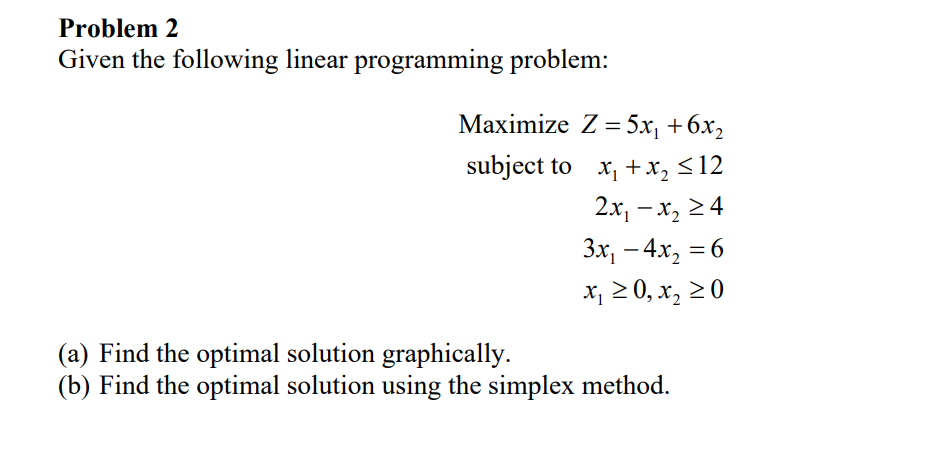 Solved Problem 2 Given the following linear programming | Chegg.com