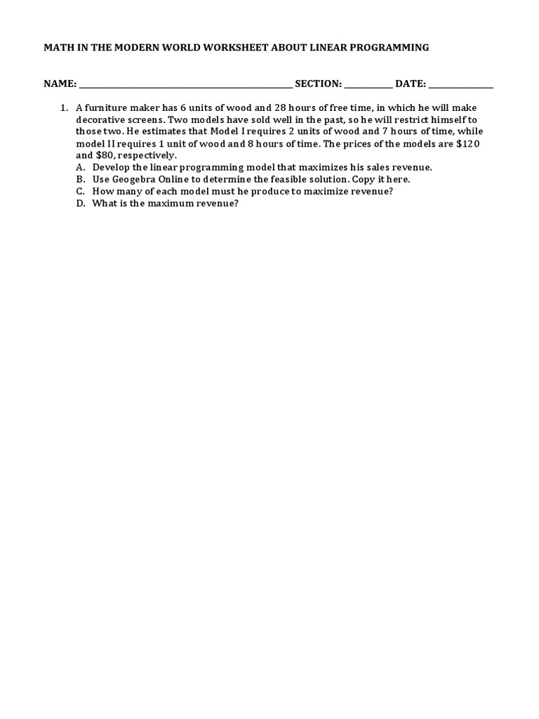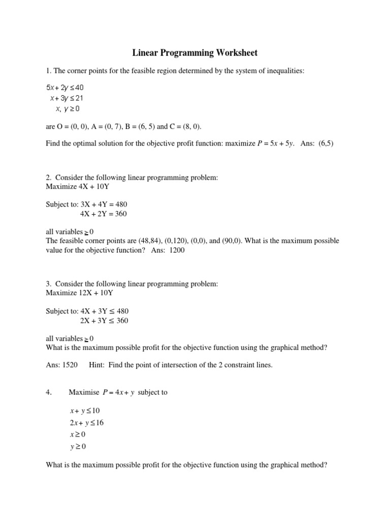 Linear Programming Worksheet With Answers - Free Worksheets Printable