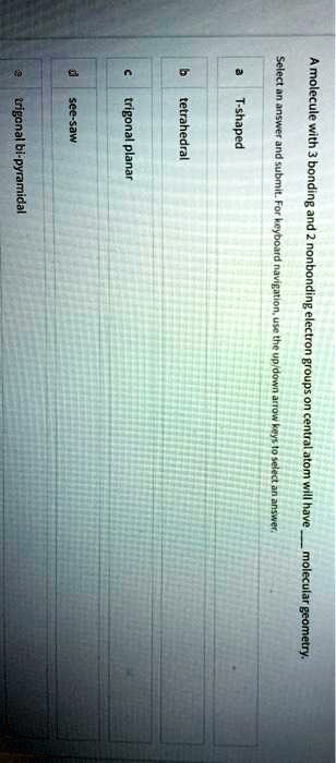 SOLVED: Trigonal pyramidal Bent Linear Tetrahedral Trigonal planar