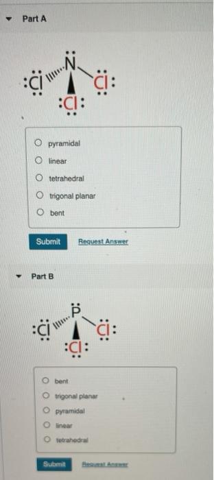 Solved Part A :C ... :C!: pyramidal linear O tetrahedral | Chegg.com
