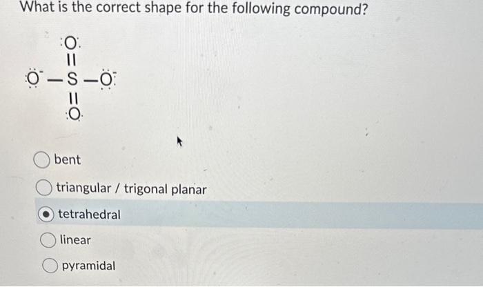 Solved: Predict the molecular shape. trigonal planar tetrahedral bent ...
