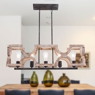 Rustic Farmhouse Wood Kitchen Island Lighting, 5 Lights Rectangular ...